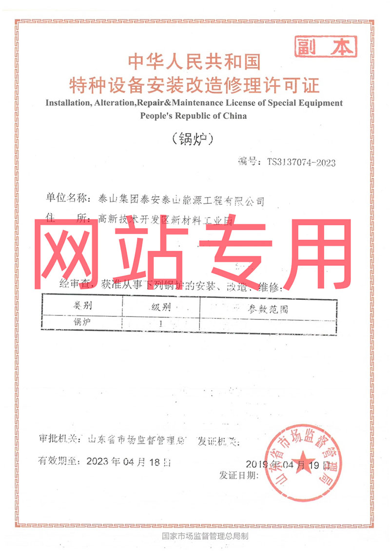 特種設(shè)備安裝改造維修許可證(鍋爐1級(jí))