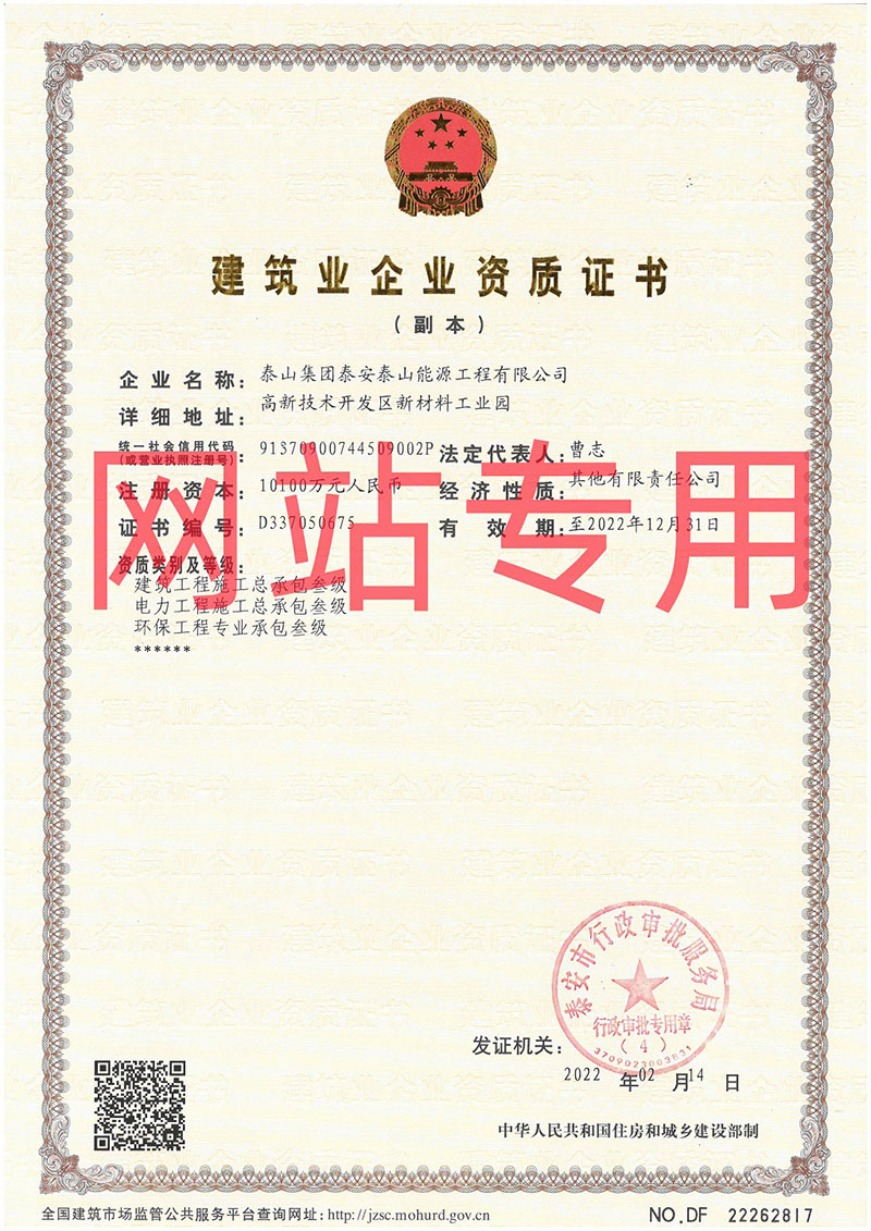 建筑工程施工總承包叁級、電力工程施工總承包叁級、環(huán)保工程專業(yè)承包叁級